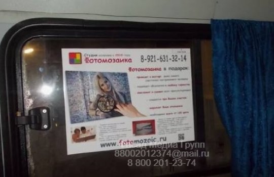 01.08.2025 Размещение рекламы на стикерах в транспорте для фотостудии Фотомозайка